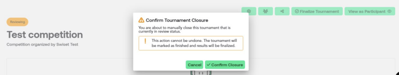 Add Manual Competition Closure Button with Confirmation for Pending Settlement Status