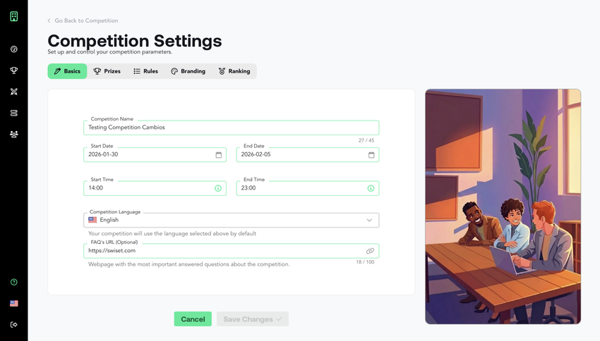 ❗️ Please note that Basics, Prizes and Rules can only be edited prior to the starting time.